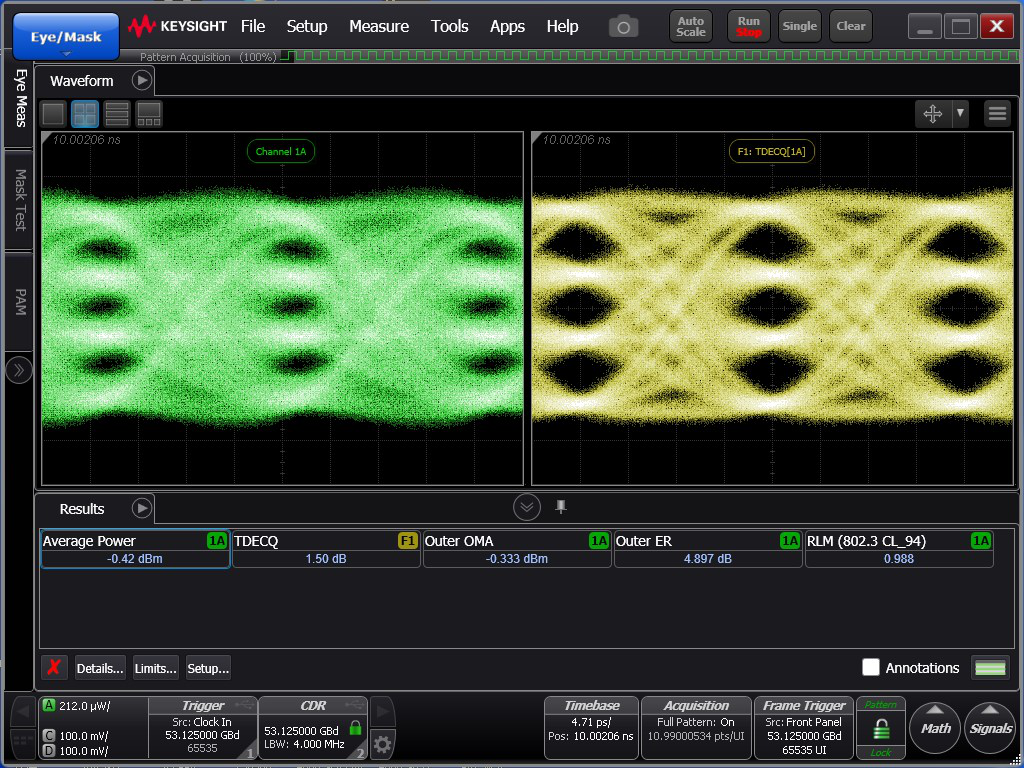 易飞扬800G QSFP-DD DR8++ 10km硅光模块使用四个1310nm的CW激光器;最大功耗小于18W;TDECQ小于2dB;支持8路100G PAM4光信号;满足双纤传输10km;OMA RXsen满足-7.1dBm @ 2.4E-4 Pre-FEC 53.125GBd,优于IEEE 802.3定义的500米链路预算要求。在800GE流量仪表上开启KP4 FEC情况下24小时在10km光纤传输自环测试无丢包。目前发行的版本支持MPO16/APC 和Dual MPO12/APC两种连接器架构。与常规8路EML方案的800G光模块相比,硅光模块可采用更少的激光器,比如800G DR8可以采用1个激光器获得更低功耗的性能。