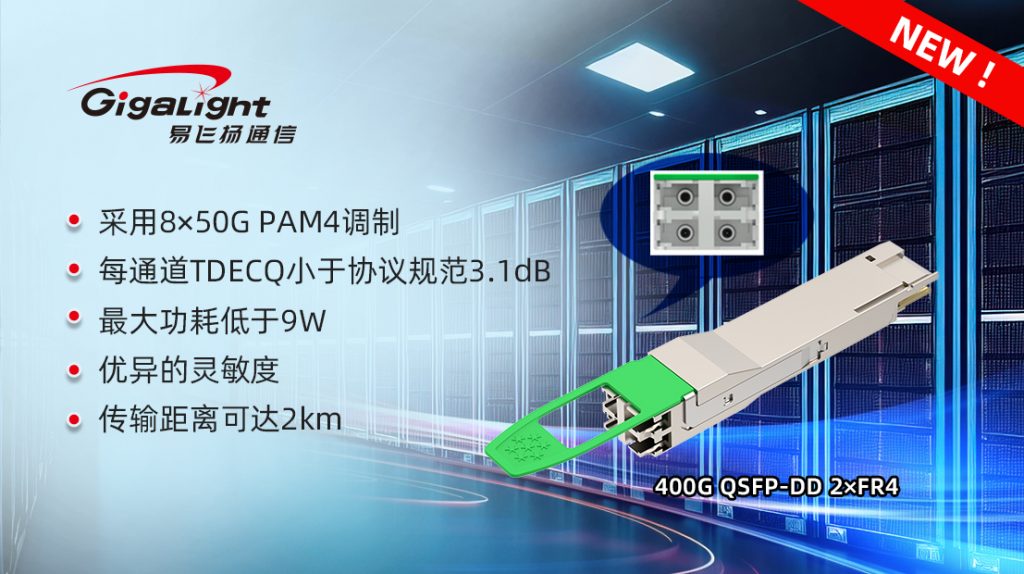 [中国,深圳,2023年9月13日]追寻最优的400G数据中心模型一直是行业的热点和焦点,易飞扬近日宣布推出一款依托50G PAM4 DML技术平台的400G QSFP-DD 2×FR4数据中心光模块,该产品为客户的数据中心架构提供了新选项。