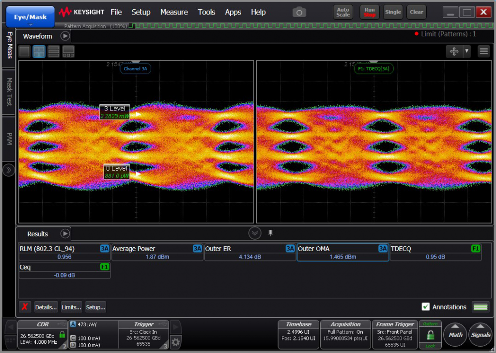 - RxSens(OMA)灵敏度优于-5.5dBm @ 2.4e-4 Pre-FEC 26.5625GBd PAM4