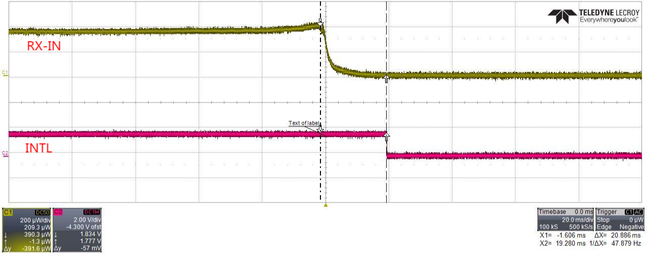 测试要求:需要测试的时间是光模块在Rx光信号恢复和中断IntL由低到高的时间。
