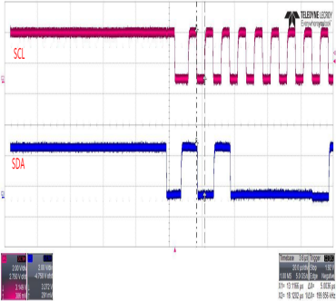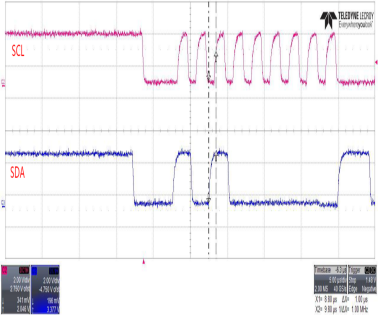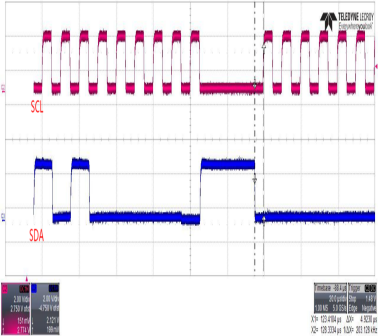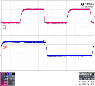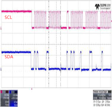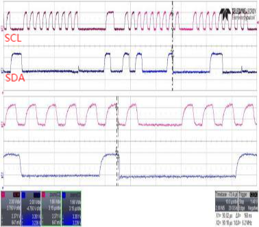 测试方法:用I2C管理工具将速率设置为100kHz,再读光模块进行I2C时序相关测试;