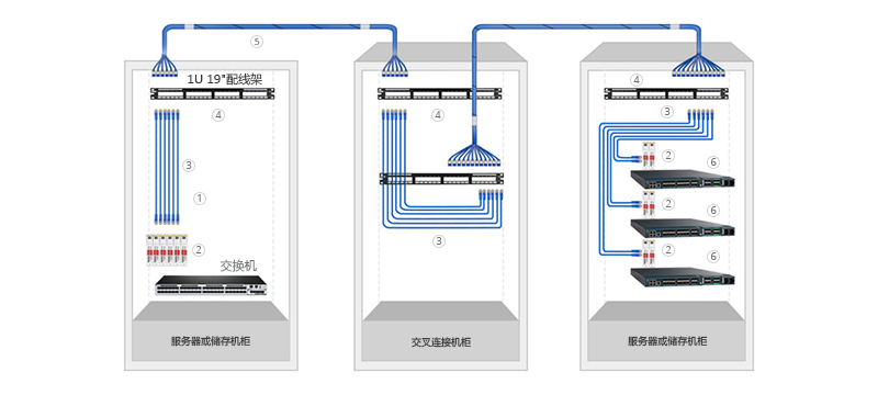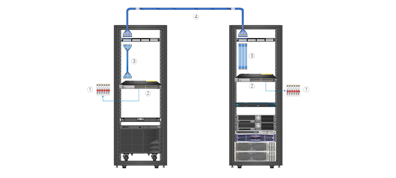 千兆光转电模块最常见的使用方式是用于两台服务器之间,这时候需要配备一台网络配线架,进行交叉式连接。具体连接使用方案如下图: