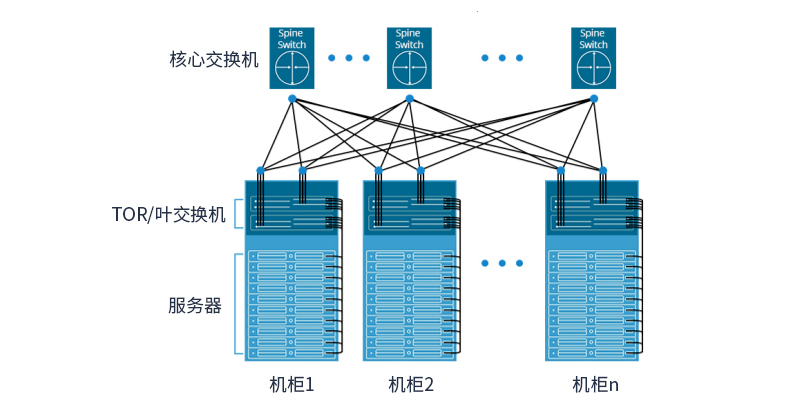 传统的布线架构我们称之为EOR和MOR,采取集中式布线。而TOR结构采用点对点布线方式,减少了布线的数量,一定程度上节约了成本,在TOR结构的设计中,每个机架至少放置一台交换机,机架内的服务器通常通过铜缆连接到交换机,每个机架中的顶层交换机互相连接。