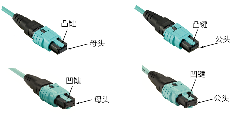 MPO连接器有两种,公头和母头。引脚可以实现精确校准,保证光纤端面不偏移。