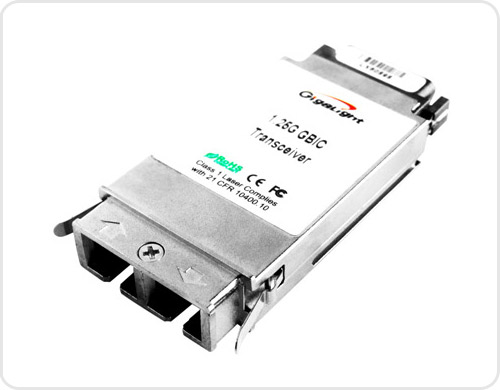 GBIC光模块,Giga Bitrate Interface Converter 的缩写,它将千兆位电信号转换为光信号,可以为热插拔使用。GBIC是一种符合国际标准的可互换产品。这种光模块在没有出现SFP封装之前使用广泛,后逐渐被SFP光模块替代。