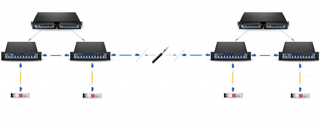 CWDM/DWDM波分复用器上的扩展端口十分强大,例如,如果你所购买的CWDM波分复用器只能支持几种CWDM波长,那么你可以通过扩展端口将该CWDM波分复用器连接到另一个CWDM/DWDM波分复用器的线路端口上,从而轻松扩展端口,提高光纤的传输容量。CWDM和DWDM波分复用器上均可以配置扩展端口。