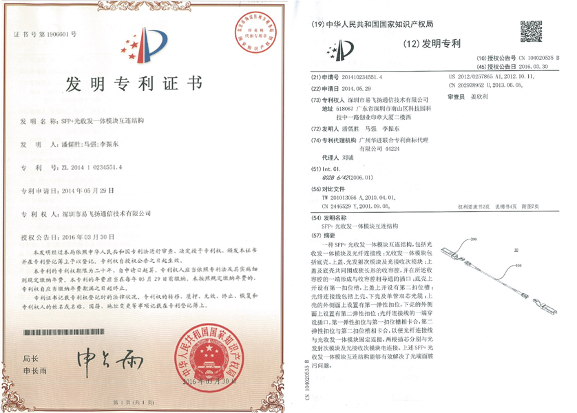 为了解决这个问题,早在2014年,易飞扬便获得10G/25G AOC创新结构设计发明专利,支持AOC的现场业务快速修复。(发明专利号ZL 2014 1 0234551.4)