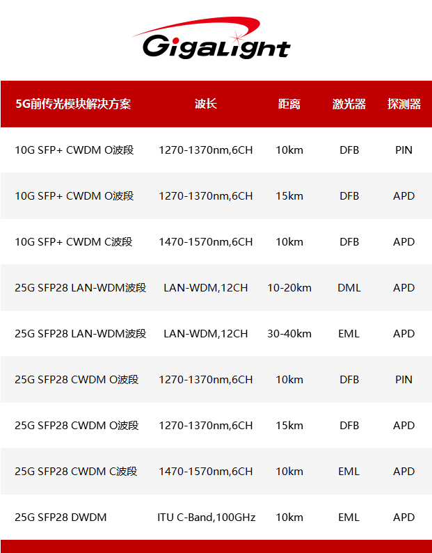 其中,易飞扬进入商业的5G 前传光模块方案如下 :