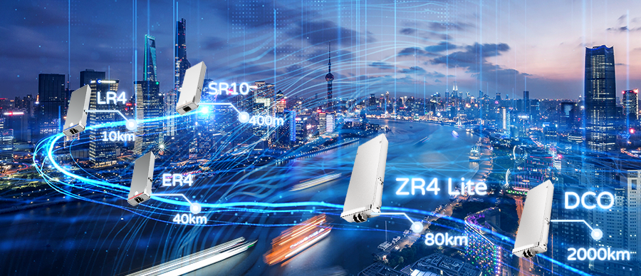 传统的100G CFP2光模块包括SR10、LR4和ER4三款,加上ZR4 Lite和数字相干光模块(DCO)这两款新增的产品,可以覆盖400m至2000km以内的所有100G光互连应用。