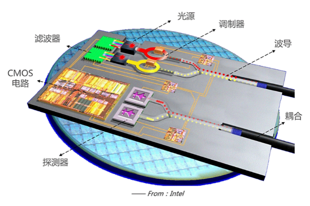 硅基光电子集成芯片概念图