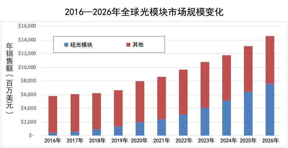 其实从2016年开始,北美两大行业巨头先遣队已经先自用了几百万只硅光模块。据市场研究机构Yole预测,到2025年,硅光模块将达到36.7亿美元,占整个光模块市场的35%,供应份额势必大幅提升,相应市场规模可期。