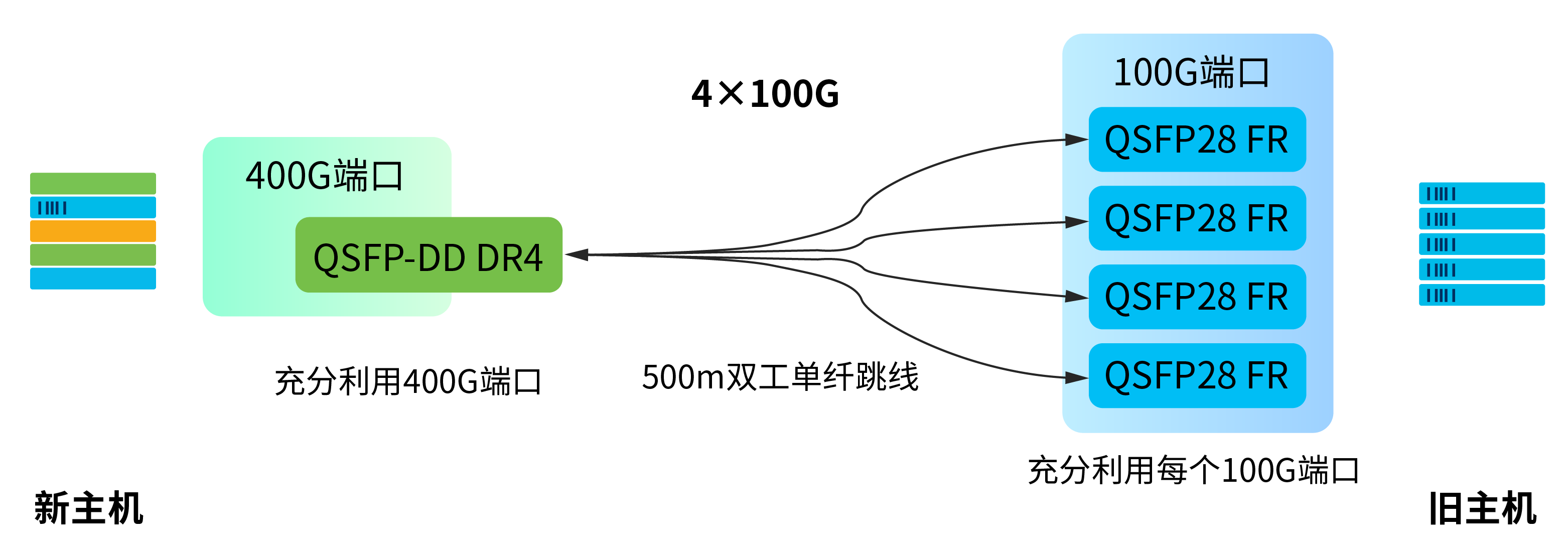- 连接400G交换机和路由器,不牺牲端口带宽