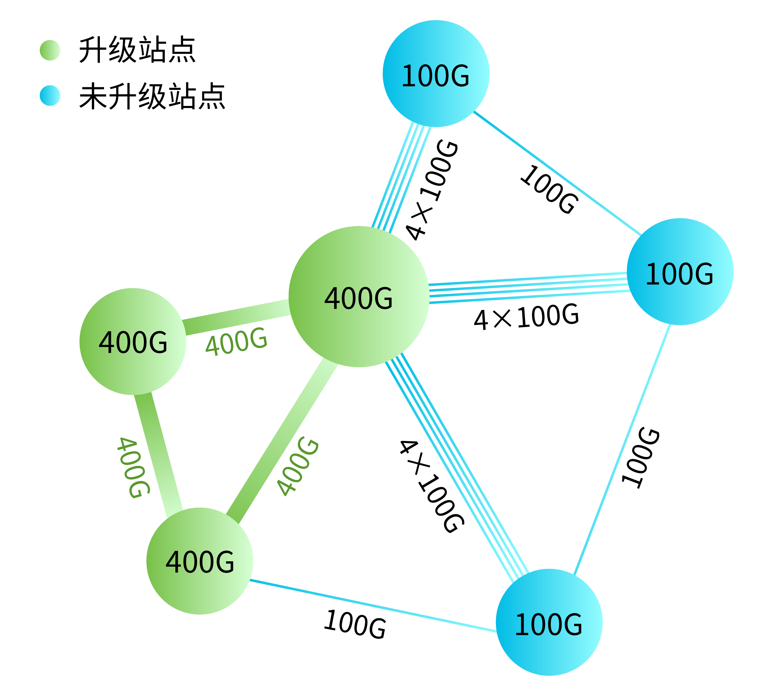 这意味着,如果您使用具有100G QSFP28端口的设备运行网络,您可以仅将一个站点升级到400G设备,并且仍将其连接到现有的100G站点,而不会牺牲端口带宽。这可以最大限度地减少您的停机时间,然后您可以在准备好后升级其他站点。