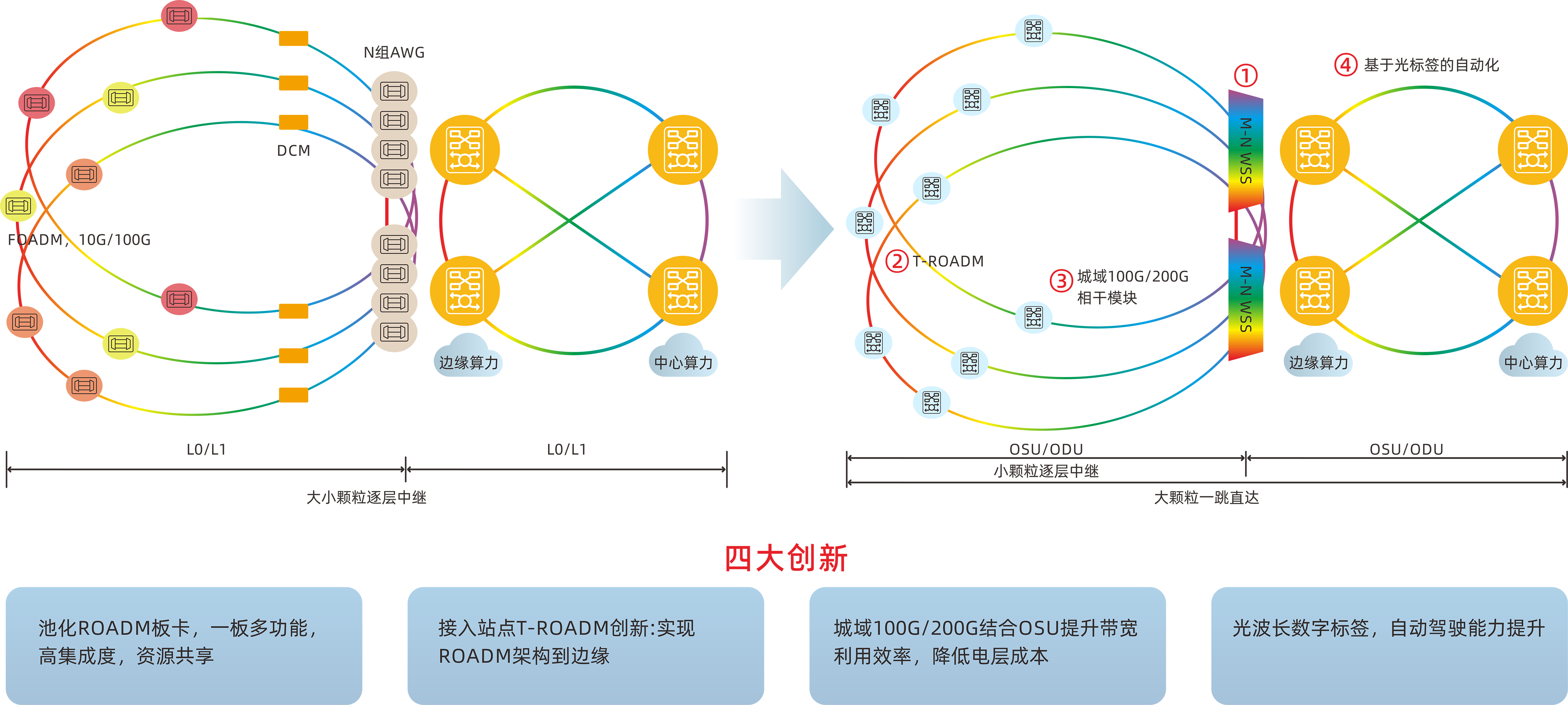 - 城域网需要借鉴骨干网的E2E ROADM/OXC+OTN综合承载模式;