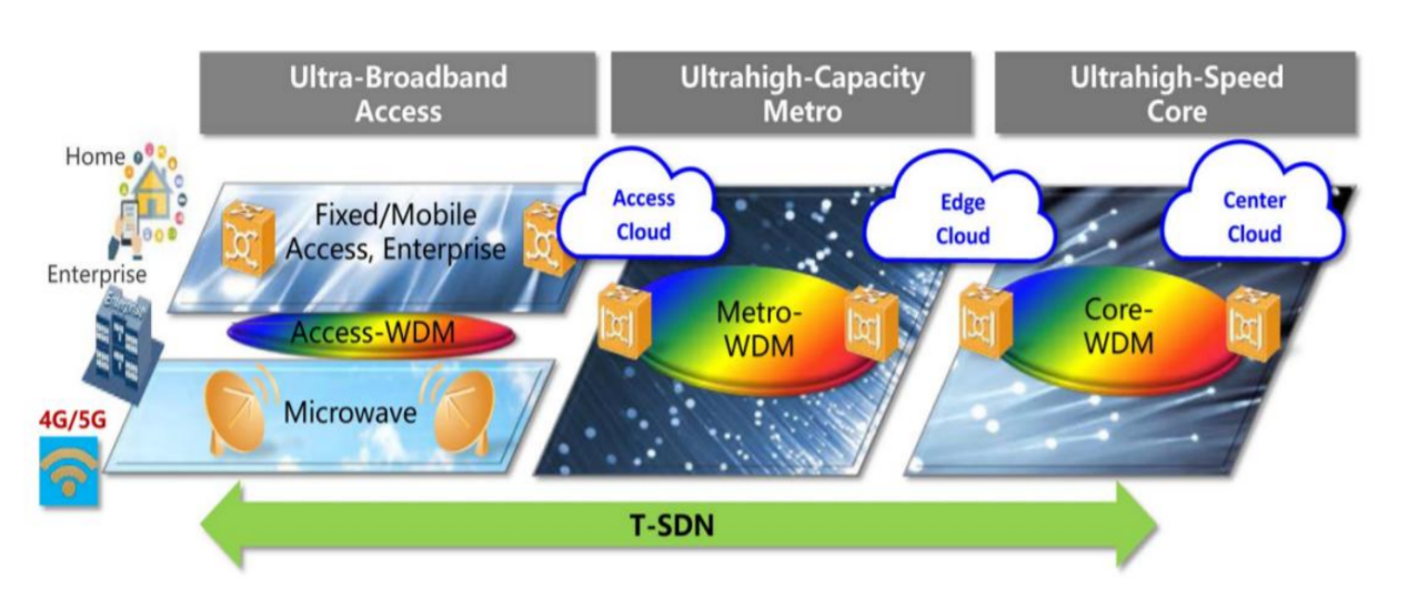 支持FTTH、4G和5G无线等不同应用的云时代光网络结构图(来自上海交通大学 陈益新《5G时代光网络创新》PPT)