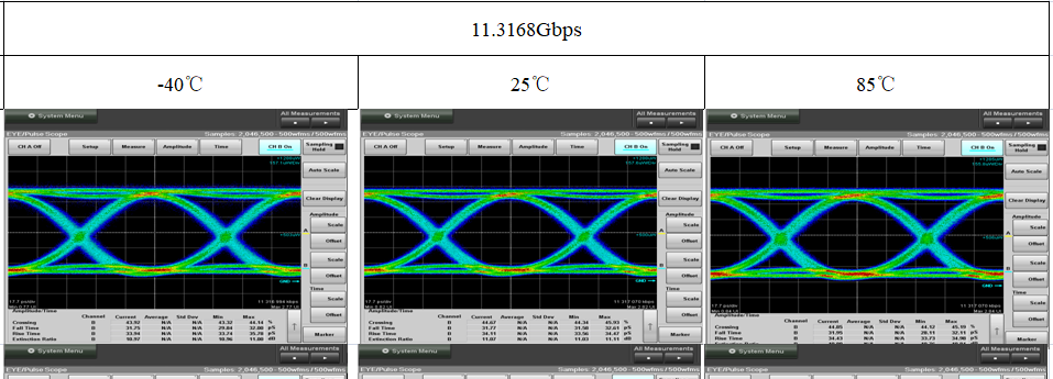 易飞扬(Gigalight)10G工业级 SFP+ DWDM 40km光模块不同温度下的眼图