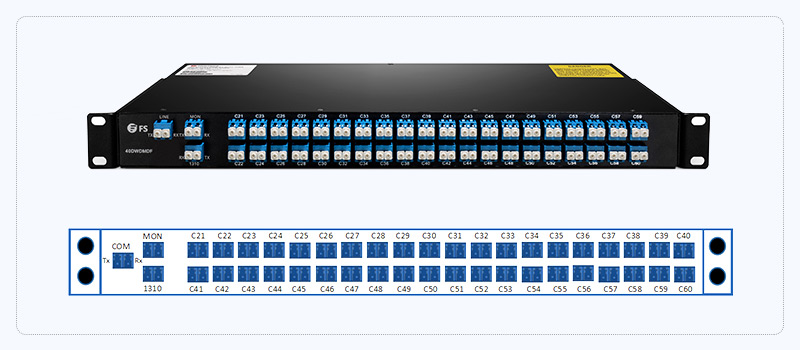 通道端口:DWDM密集波分复用器可以复用96个不同波长的光载波信号,信道间隔为0.8nm(100GHz)或0.4nm(50GHz),常用来进行城域网等长距离传输应用的光纤扩容。
