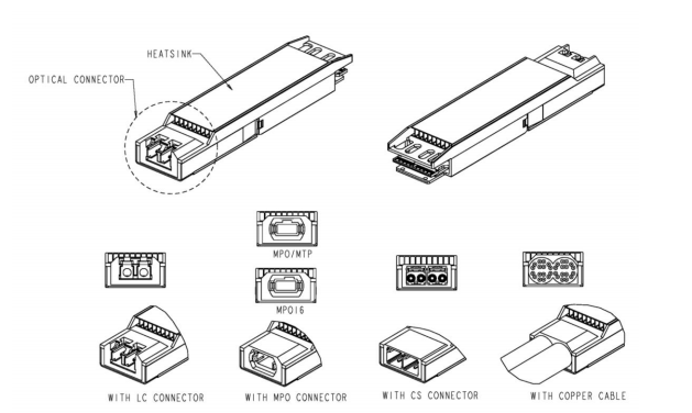 定义光模块尺寸的MSA主要是SFP MSA,XFP MSA,CXP MSA,QSFP MSA,CFP MSA,OSFP MSA,和QSFP-DD MSA,也是目前市场上留存下来的几种主要封装形式。
