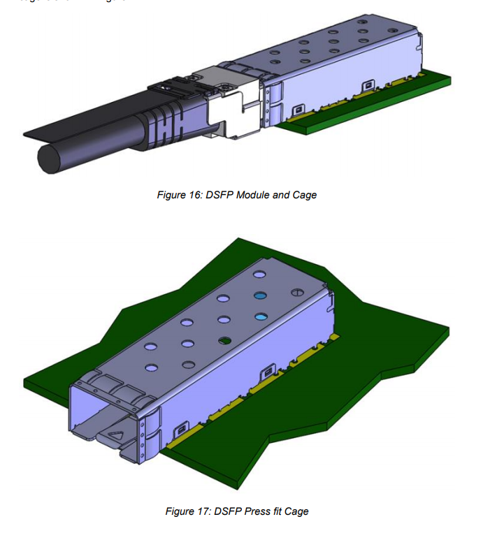 DSFP MSA标准定义10G点对点应用光模块。为双发双收光模块,支持两个电通道(Electrical lanes),兼容SFP+封装规范,可为5G网络提供高密度、低成本的光模块解决方案。,通信设备采用DSFP产品后,由于模块密度翻倍,因此成倍提高了通信设备的端口密度和吞吐量,也相应的提高了设备的性价比,增加了客户的产品竞争力。