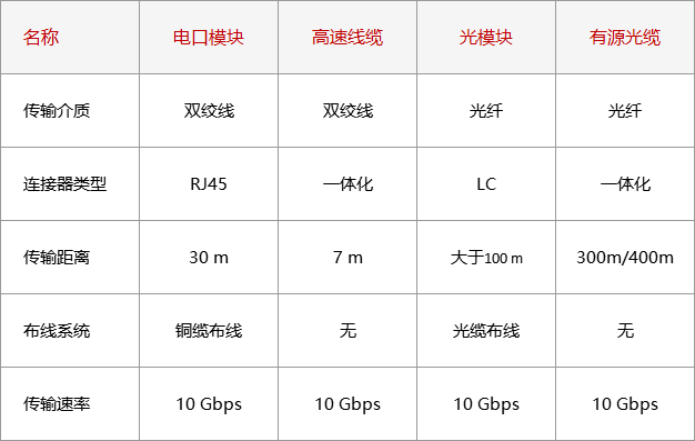 以10G以太网互连为例:电口模块VS高速线缆 VS光模块VS有源光缆
