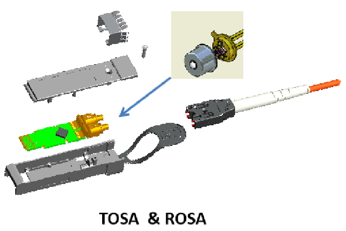 易飞扬采用TO-CAN同轴封装工艺制作的10G SFP+ AOC产品(爆炸图)